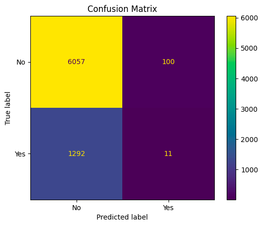 Based on this confusion matrix, the model correctly classified all instances in class 0 (6157 true negatives). However, the model incorrectly classified all instances in class 1, as indicated by the 0 true positives and 1303 false negatives.